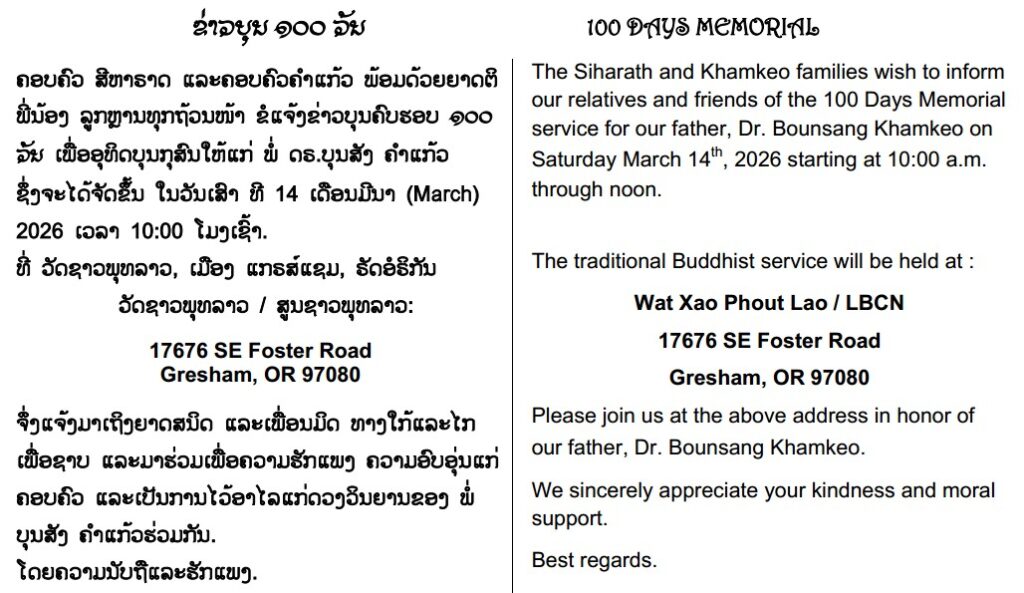 ຂ່າວບຸນ 100 ວັນ – 100 DAYS MEMORIAL